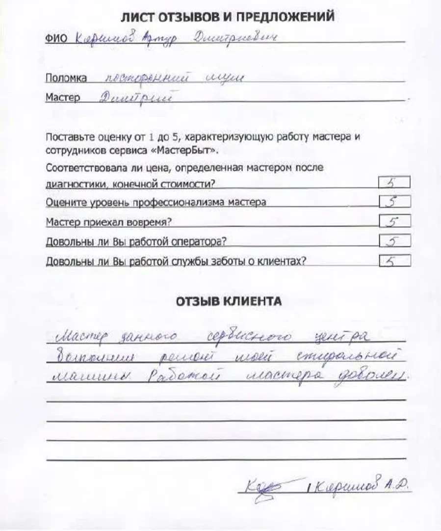 После ремонта мастер проверит работу стиральной машины и оформит гарантию на выполненные работы