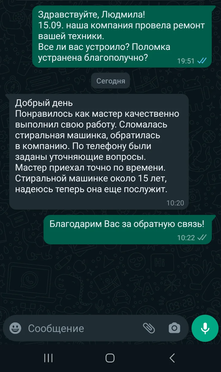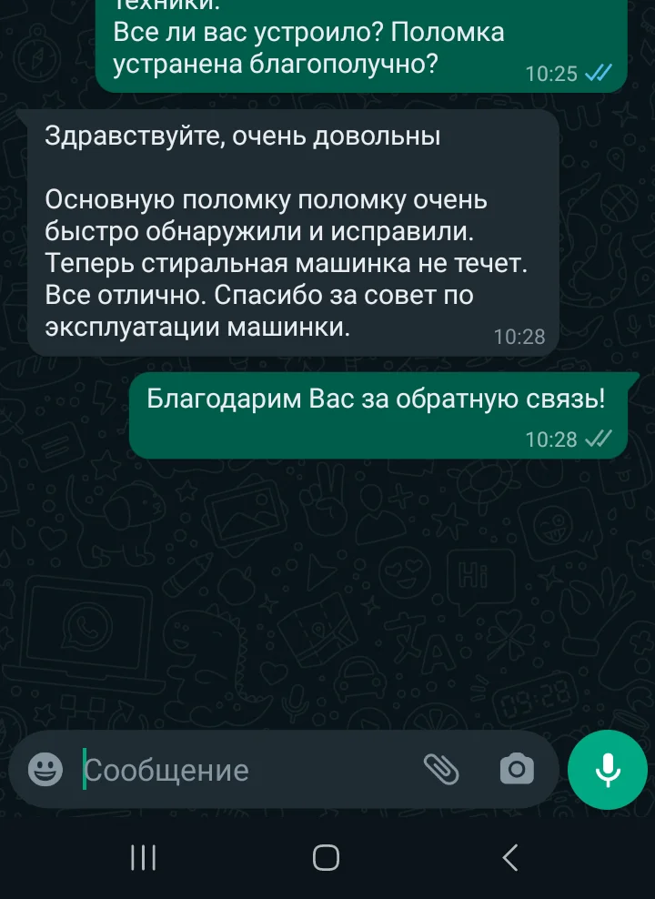Мы уточним детали и согласуем удобное время для визита мастера